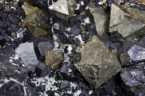 Magnetite (grayish) associated with pyrite (golden) (الإنجليزية)