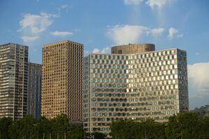 La [[tour Mirabeau]] où siège le CSA, sur le [[front de Seine]], à Paris. (الفرنسية)