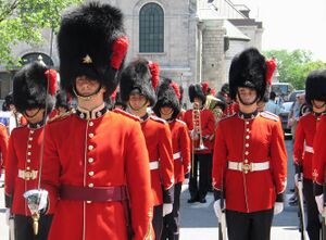 The Royal 22e Régiment of the Canadian Forces exercising its Freedom of the City in front of City Hall, during the celebration commemorating the 398th anniversary of Quebec City, on July 3, 2006 (الإنجليزية)