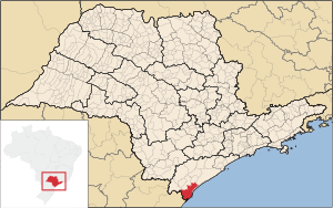 southernmost city in the state of São Paulo, Brazil, near to where the Tordesilhas Linepassed |