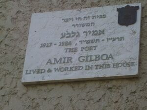 Memorial plaque to the poet Amir Gilboa in Tel Aviv.JPG