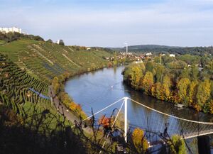 Neckar bei Stuttgart mit Weinbergen (الألمانية)