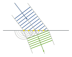 Refraction - Huygens-Fresnel principle.svg