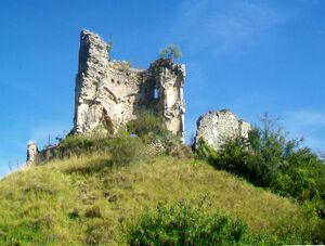 Château-sur-Epte (27), ensemble castral, le donjon depuis le sud-est.jpg