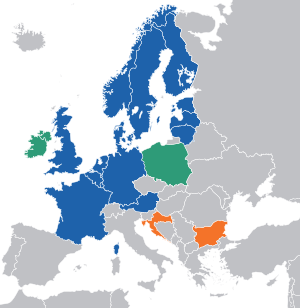 European Nord Pool markets: Current markets (blue), expansion market (green), serviced market (orange). (الإنجليزية)