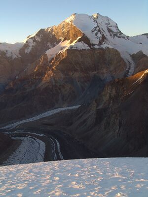 Peak Korzhenevskoi Pamir from Borodkina ridge at sunset.jpg