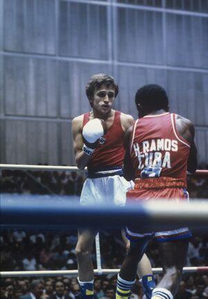 Сабиров (слева) во время финального боя на ОИ 1980 (الروسية)