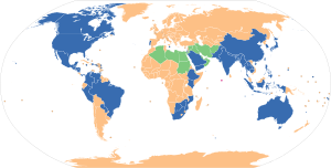 World map showing the first day of the week used in different countries according to the Common Locale Data Repository. (الإنجليزية)