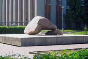 Памятный камень на месте, где стоял дом, в котором родился В.И. Чапаев.jpg