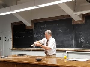 Professor Christ demonstrating that the fundamental group of SO(3) is Z2.jpg