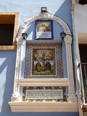 | الإنجليزية | Ceramic panel of Our Lady of El Pilar and the Holy Heart of Jesus |
