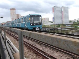 A train 81-717/714 at Nagatinsky metro bridge (الإنجليزية)