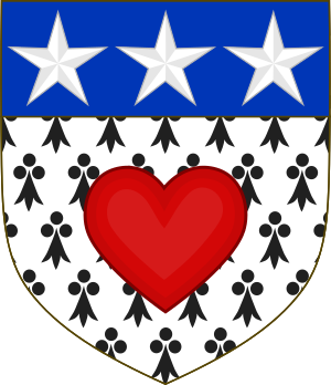 D'hermine, au cœur de gueules, au chef d'azur, à trois étoiles d'argent. (الفرنسية)