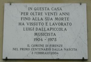 Placa commemorativa del centenari del naixement de Dallapiccola a Florència (الكتالانية)