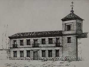 Fachada del Colegio de los Manchegos hacia 1627. (الإسبانية)
