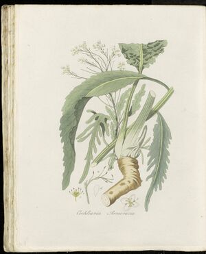 Cochlearia Armoracia (modern=Armoracia rusticana) - Pl0303 - FloraBatava-KB-v04.jpg