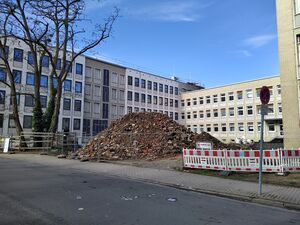 Bürohäuser Akazienstraße mit Trümmern 2021-03.jpg