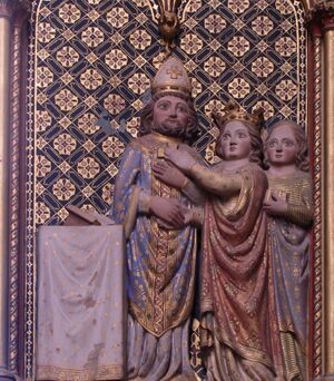 Епископ Лиутвард, императрица Рихарда и служанка. Деталь рельефа из церкви Святых Петра и Павла в аббатстве Андлау (XIV век) (الروسية)