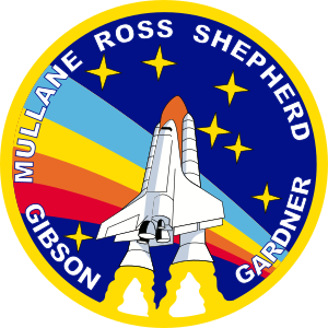 Fila del darrere, E-D: Shepherd, Mullane. Fila del davant, E-D: Gardner, Gibson, Ross. (الكتالانية)