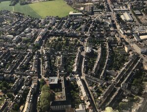 Vue aus dem Fliger op een Deel vu Bouneweg; ganz riets am Bild d'[[Route de Thionville (Stad Lëtzebuerg)|Diddenuewener Strooss]] (اللكسمبورغية)