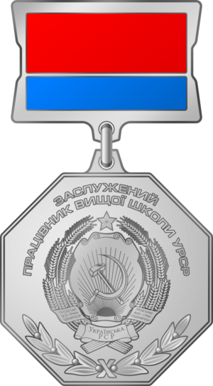 | الإنجليزية | Merited Worker of Higher Education of the Ukrainian SSR |