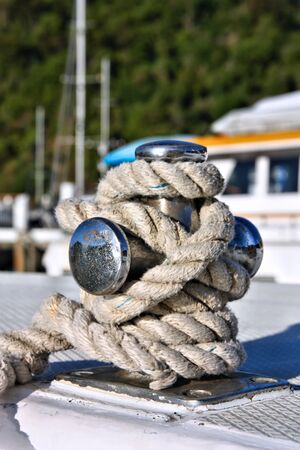 002 Mooring bollard types - cruciform mooring bollard on harbor jetty with tied mooring rope.jpg
