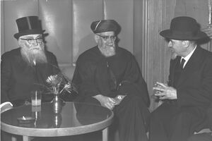 Chief Rabbis Yehuda Unterman Yitzhak Nissim and Rabbi Israel Brodie 1964.jpg
