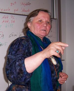 Nina Afanasjeva underviser i kildinsamisk ved Humboldt-Universitetet i Berlin (2007) (النرويجية بوكمال)