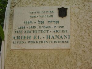Memorial plaque on the architect Arieh El-Hanani house in Tel Aviv.JPG