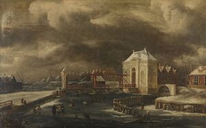 De Heiligewegspoort te Amsterdam in de winter Rijksmuseum SK-A-2506.jpeg