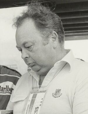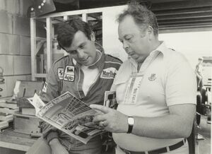 Jean Graton, à droite, auprès de [[Patrick Tambay]]<br>sur le [[circuit de Zandvoort]] en 1983. (الفرنسية)