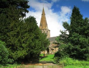 L'église paroissiale de Gumley est dédiée à sainte Hélène (الفرنسية)