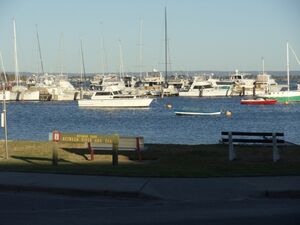 View of the Swan River and sign of Mosman Park, Western Australia.JPG