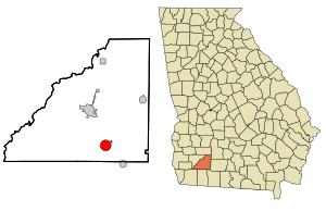 Mitchell County Georgia Incorporated and Unincorporated areas Pelham Highlighted.svg
