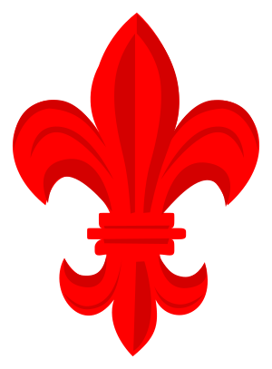 Rank insignia - red fleur-de-lys scout leader's badge (الإنجليزية)