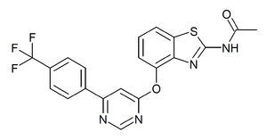 CC(=O)NC1=NC2=C(C=CC=C2S1)OC3=NC=NC(=C3)C4=CC=C(C=C4)C(F)(F)F