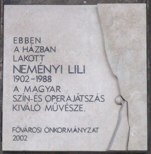 Neményi Lili emléktáblája VII kerület Károly körút 13 15.JPG