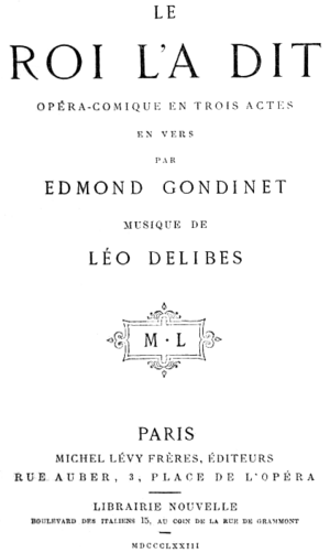 Léo Delibes - Le roi l'a dit - titlepage of the libretto, Paris 1873.png