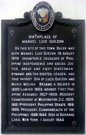 Birthplace of Manuel Luis Quezon PHC marker.jpg