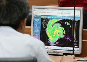 Surveillance d'un typhon par un météorologue japonais. (الفرنسية)