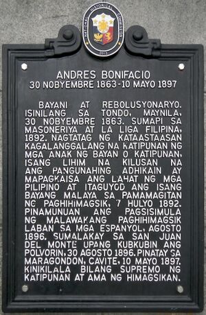 Andres Bonifacio NHCP historical marker (Liwasang Bonifacio).jpg