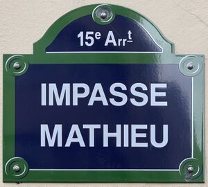 Plaque Impasse Mathieu - Paris XV (FR75) - 2021-08-09 - 1.jpg