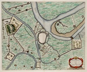 Siege of Rheinberg by Maurice of Orange in 1601 - Rhenoberca obsessa et capta (Atlas van Loon).jpg