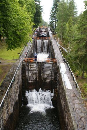 staircase locks with 5 chambers, part of the Telemark Canal الإنجليزية