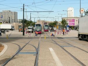 Tramway de Dijon - Station Gare (T1) et raccordement ligne T2 vers Monge.JPG