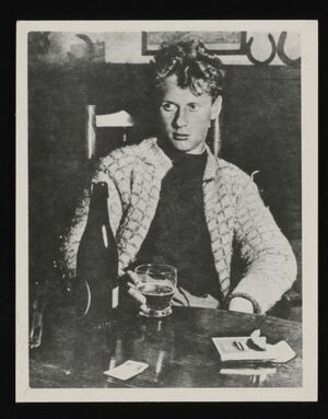 Dylan Thomas, drinking a pint of beer in a pub in Wales.jpg