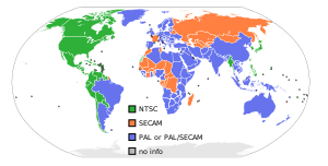 Television system by country. Countries using the PAL system are shown in blue. (الإنجليزية)