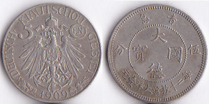 currency issued by Germany for use in Kiautschou Bay Concession |