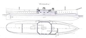 the central (or centre) battery ship, developed as a result of the Battle of Hampton Roads in 1862, during the American Civil War. الإنجليزية