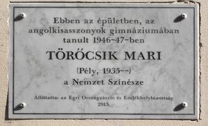 Plaque of Mari Töröcsik. - 8 Kossuth Street, Eger, 2016 Hungary.jpg